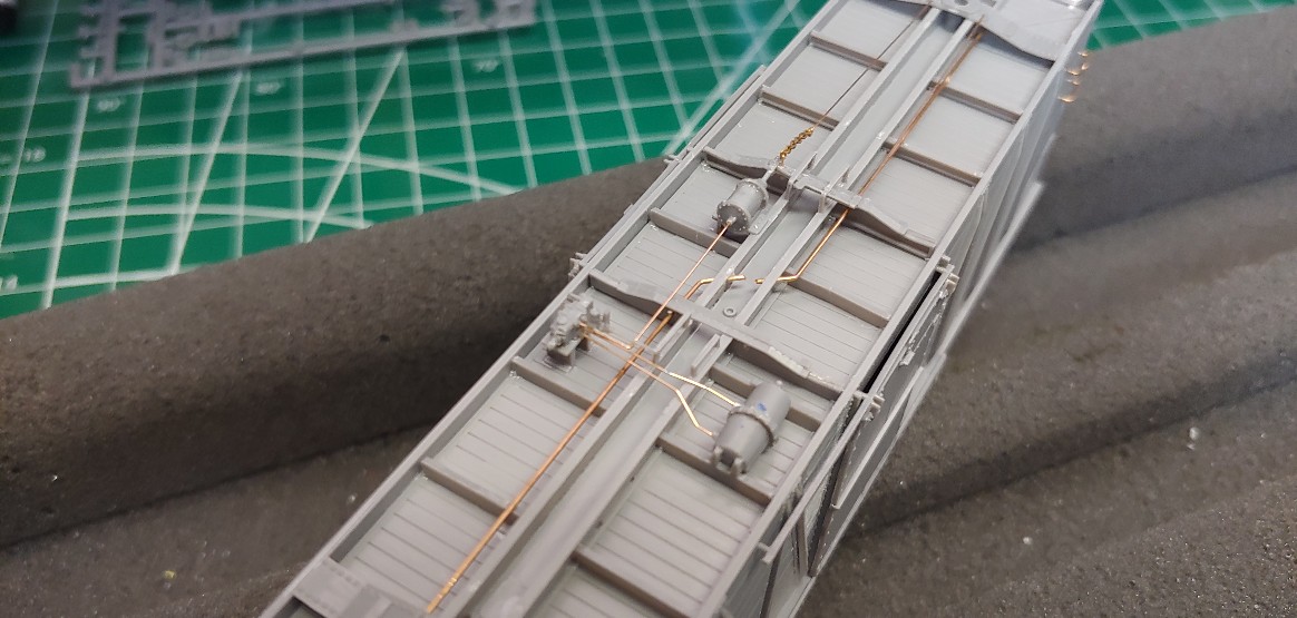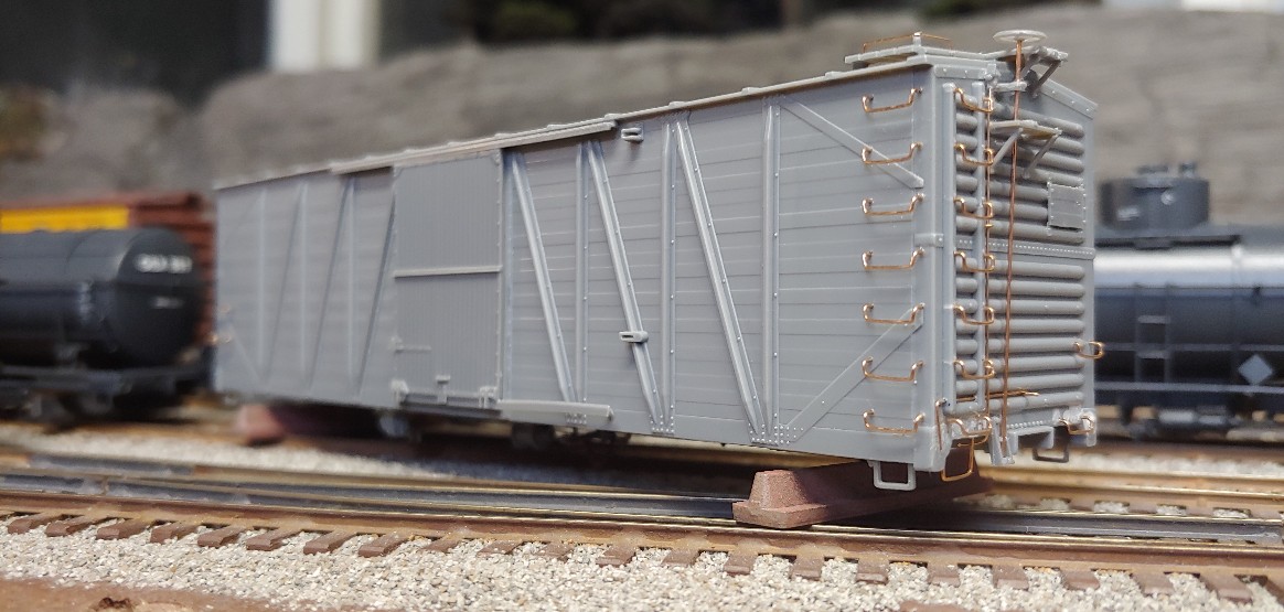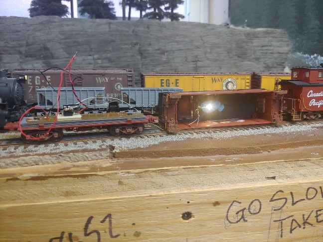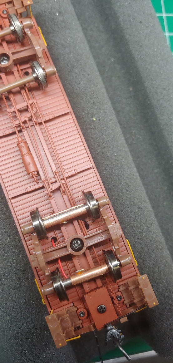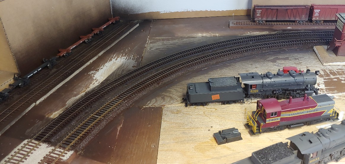 RE: It's been a long time.... - tetters - 09-07-2020 Well. I didn't finish. But I managed to get this far tonight before deciding to pack it in. RE: It's been a long time.... - scribbelt - 09-07-2020 Very nice workmanship! RE: It's been a long time.... - Schraddel - 09-08-2020 Tetters, i agree with you. In some times a detail made out of wire instead out of plastic is the far better choice. As with plastic there is standard styrene (PS), cheap, superior glueablility, but prone to break. Then on the other end polyethylene (PE), also cheap, unbreakable, but unglueable. And there between these two extremes the so called engineering plastics, in comparison expensive and according to the type affectionate either to the glueable/breakable or the unglueable/unbreakable end. Here at the exposed spots the metal parts cut in. Thin brass or nickel-silver wire is simply more rugged and if anchored into bores onto the body even still more rugged. Remember the old wisdom of glueing; the stability of of an glued joint depends strongly onto the seize of the available area. In the case of the steps out of engineering plastic there are the bugbears of a only very small adherend, a badly glueable plastic material and a exposed position. No wonder the parts were departing like interstellar rockets if "looking to sharp" on it. And to your work tetters, as we Germans have a different definition code for acclamation as Canadians, "hervorragend" means really the highest class of praising. ![]() Lutz RE: It's been a long time.... - tetters - 09-08-2020 Thank you Scribbelt! ...and thank you for the "outstanding craftsmanship" compliment Lutz. Sometimes I feel like I'm my own cheerleading squad but it's nice to know some folks notice my efforts. LOL. So, some more progress this afternoon. I wasn't entirely happy with the length of chain I cut for the brake rod and clevis so I brushed some un-cure on the CA'd connections, removed the fiddly bits and cut a longer section of chain. I was able to reuse the previous brake rod, however I fashioned another "eyebolt" out of some .008 phosphor bronze rod and "needle and thread" style assembled it all together. I carefully crimped the ends of the rod to securely hold the chain in place. Getting it all back into place was actually easier then I thought. I paid attention, though, trying to keep the brake rod from dropping to much and keep it as level as possible for the next step. It occurred to me and looking at the photos of the prototype that there appears to be support rods of sorts that help hold up the brake rod. (It's also occured to me that the part I'm referring to may be called something else but I'm going with brake rod). So I fashioned a couple of supports of sorts out of the same .008 wire, drilled holes in the car floor parallel to the center sills and CA'd them in place doing my best to keep the rod level with the frame. Here's a picture of the undercarriage with the support rods in place. I also by this time CA'd the center rod and A end rod in place to the smaller clevis and A end bolster. and finally how it all looks flipped over view from eye level. I placed a sheet of white paper behind the model to help add some contrast. It might not be exactly how the prototype was built but it's exactly the look I'm after. It gives the impression that something is going on under there. Thanks again for the comments, suggestions and advice guys. It really helps me. RE: It's been a long time.... - tetters - 09-08-2020 Done! RE: It's been a long time.... - Schraddel - 09-09-2020 Wordless: ![]() Lutz RE: It's been a long time.... - FiatFan - 09-09-2020 Outstanding work! And you have many fans who thoroughly enjoy/enny your model building skills. Thank you for taking the time to share your work. Tom RE: It's been a long time.... - doctorwayne - 09-09-2020 Yeah, work done-well is always a joy to behold! ![]() ![]() ![]() Wayne RE: It's been a long time.... - ezdays - 09-09-2020 My patience wouldn't allow me to do this kind of work. My hat is off to you for the fine details you've accomplished. ![]() ![]() RE: It's been a long time.... - tetters - 09-18-2020 Taking a break of sorts from boxcars to turn my attention towards some much needed maintenance topside. It's hard to believe that this layout has existed for almost (if not more then 10 years). Albeit it sat for a few years too, dormant and untouched. And even though when I finally dusted things off two years ago and fired up the power supply everything came back to life it wasn't without its problems. A few turnouts needed to be fixed and the track desperately needed a thorough cleaning. There's been one area of contention that's bothered me for a while where the branchline and yard lead make the only real curves on the layout. I've been avoiding this because I knew exactly what I'd have to do to fix it as well. Anyways...something shifted which caused the track work to heave slightly. Enough so to cause the rail to pull away slightly from the ties and cause occasional derailments. I didn't take a before photo, however here it is with the rail removed... You can also see how the plywood has lifted about an 1/8 of an inch in the foreground. Well it was time to break out the oscillating tool carve up all of the road bed and then sand the area as smooth as I could get it. Why I didn't take pictures of the destruction and mayhem this created escapes me. Thankfully it all worked out in the end. I fully admit I cheated here. I was fresh out of homasote for road bed and the tracks are in an area that's incredibly difficult to hand lay without climbing on top of the layout. So I ended up using some corkbed and two three foot pieces of Peco flex track to span the curve. I used cereal box cardstock to shim up the height of the cork in order to ensure the rail head lined up nice and flush with the existing trackwork. Afterwards the all of the new trackwork received a fresh coat of rattle can espresso brown, followed by a dusting of