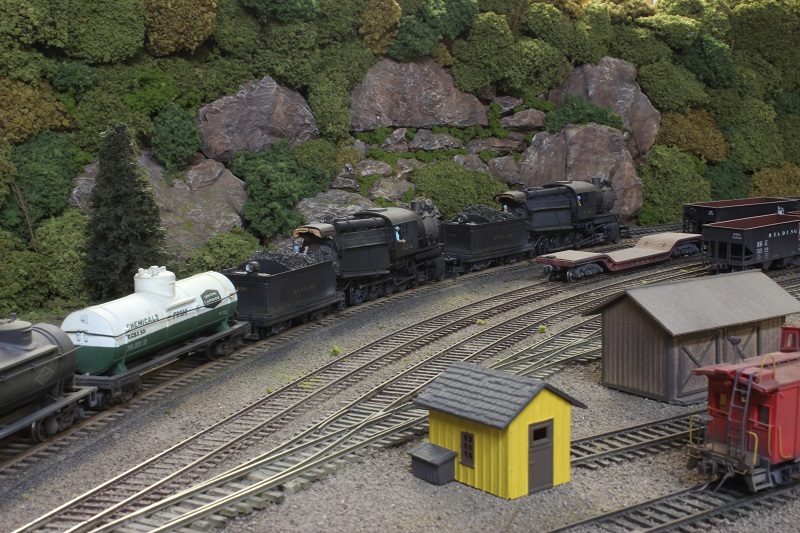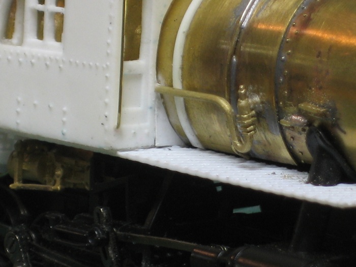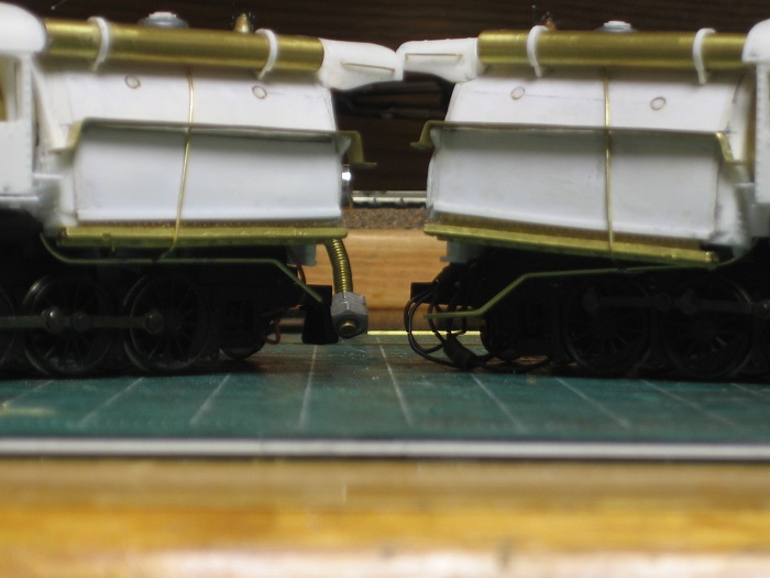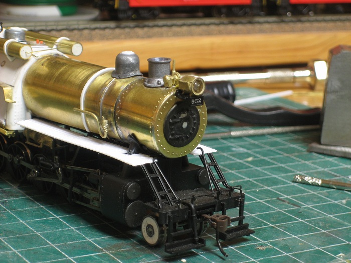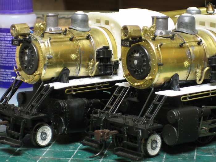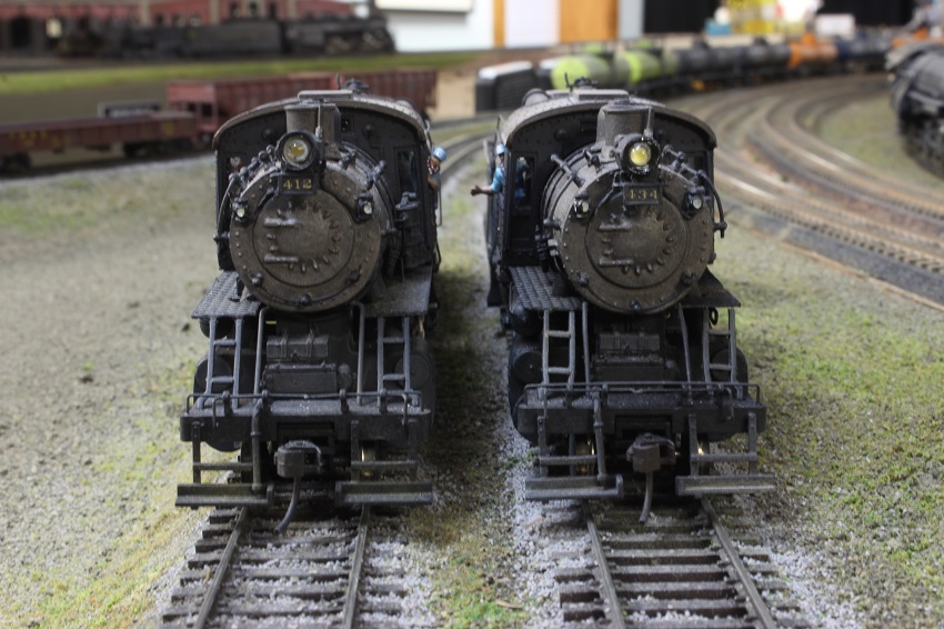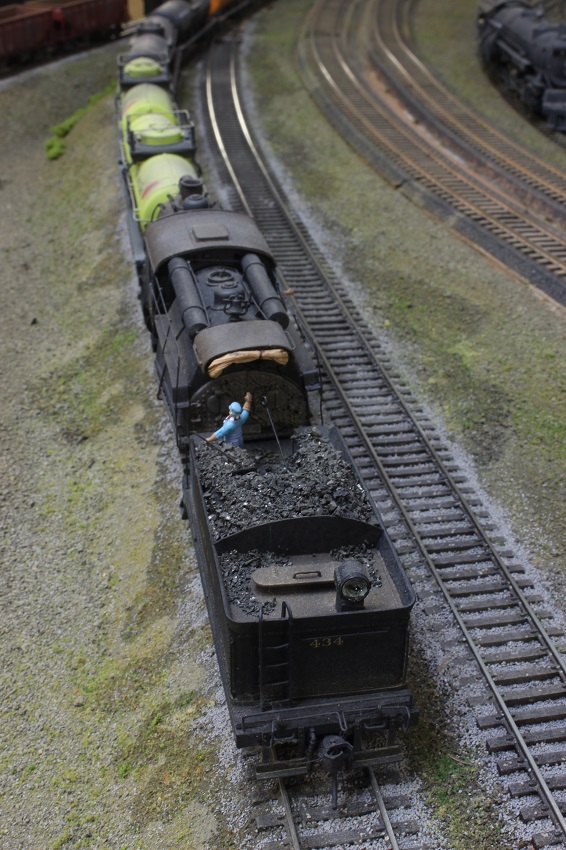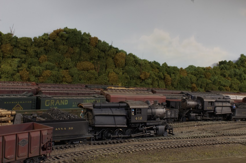 Lets build a camelback,, or two. - e-paw - 10-13-2012 My next step was to loosely place the LED into the headlight and fish the leads through the hole in the top of the firebox so that they could be soldered. I replaced the boiler on the frame by pulling the slack head light wire back into the firebox (the only place where there is room on this model) and glued the assembly in place. After it dries completely I'll bend the wire into it's final position and fill in the holes with putty. Re: Lets build a camelback,, or two. - EM-1_7600 - 10-13-2012 e-paw, You have done some impressive work here. you really got me going to work on the B&O's I have planned! VERY NICE! Lets build a camelback,, or two. - e-paw - 10-20-2012 Moving onward,, I have started on some of the plumbing on the 2-10-0's. I'll start by showing the cold water feed from the tender, it is just a 2 inch scale pipe that runs on either side of the loco up into the cab where the injectors would be located. I also shaped some of the piping that will be placed under the walkways. I did this by forming some brass wire around some nails and soldering some hangers to it. This picture shows one that is complete and one that's in the works. after they were formed I attached them to the walkways with some CA glue. Lets build a camelback,, or two. - e-paw - 10-20-2012 I also bent some steps that I soldered to the side of the smokebox. Also note the large gap at the bottom of the cab where it continues straight down and the boiler curves away from it. Well I filled it.. To add some subtle differences to the two locomotives I cut up an A-B valve and turned it into a control cabinet that I then mounted on the top of the walkway. After that I moved on to the forward handrails. For this section of handrails I was able to salvage the stations from the old boilers. The rear section will have to be a custom fabrication type of job. Re: Lets build a camelback,, or two. - EM-1_7600 - 10-20-2012 e-paw, VERY GOOD eye to detail you got there! NICE work! Very impressive! Lets build a camelback,, or two. - e-paw - 10-23-2012 Thank you EM-1.. I finished up the handrails on the front half of the boiler And also added the bleeder valve to the smoke box. I still have to add a few more things here and there to the front of the boilers before I can move on to other places on the model. One thing that needs attention are the boiler supports, but that's another day. Here's a front on view of the two locomotives. Re: Lets build a camelback,, or two. - Graffen - 12-20-2013 I just love this build! Are they finished? Re: Lets build a camelback,, or two. - e-paw - 12-20-2013 They were finished a while age.. It seems that a good portion of the thread is now missing, I'm not sure what happened to it. I sent Ngauger a PM to see if he could help. Here's a pic of one of the completed camels. Re: Lets build a camelback,, or two. - nkp_174 - 01-11-2014 Very Nice! Re: Lets build a camelback,, or two. - e-paw - 01-11-2014 Thanks NKP,,I just wish the rest of the thread was still here.. :cry: :cry: :cry: :cry: :cry: Re: Lets build a camelback,, or two. - CNJ774 - 08-03-2016 Howdy; The finished locomotive photos are still not here. Can you re-post? Thanks - Dave Re: Lets build a camelback,, or two. - e-paw - 08-03-2016 Well since the end portion of this thread has disappeared into Big Blue purgatory ,and I have neither the time, stomach, or pictures to repost the missing portion of this thread. I took a few shots today of the two camelbacks in action on the layout. Here 434 does some switching in Allentown (AT) yard. 412 comes into view with a cut of cars in the same location. This is the most common assignment for the 2-10-0's . They normally work this yard in pairs, facing each other, so that the engine with the better visibility will handle the respective east or west move. There is more than enough work for the two crews in this yard as war time traffic has stretched this line well past what the brass thought they could handle. The decapods do still see plenty of main line work. Here is a run by near the west entrance of AT yard with 434 and 412 double heading an eastbound chemical train. Pusher service is also a common task for these camels, here 412 shoves hard on the rear of an 100 plus car train of empty coal hoppers. This helper district starts here in Bath and runs west to the coal fields in Mahanoy city. Re: Lets build a camelback,, or two. - e-paw - 08-03-2016 As there is always switching to do, here is an overhead shot of 434 working the siding of a chemical plant in Bath PA. Here the two sisters pose side by side for us. Re: Lets build a camelback,, or two. - modelsof1900 - 08-04-2016 Great pictures and excellent built loco models! Thanks for sharing! Re: Lets build a camelback,, or two. - faraway - 08-04-2016 My diesel heart has a soft spot for camelbacks... Great models and phootos ![]() |