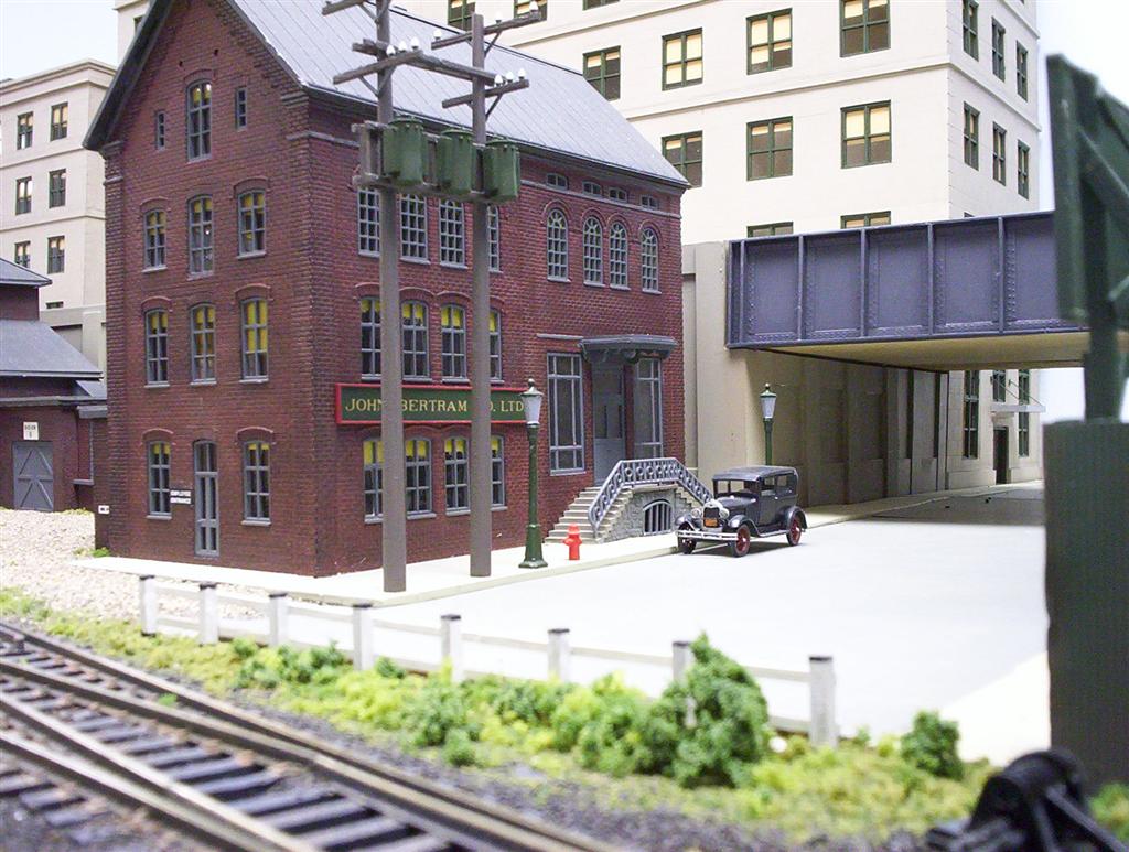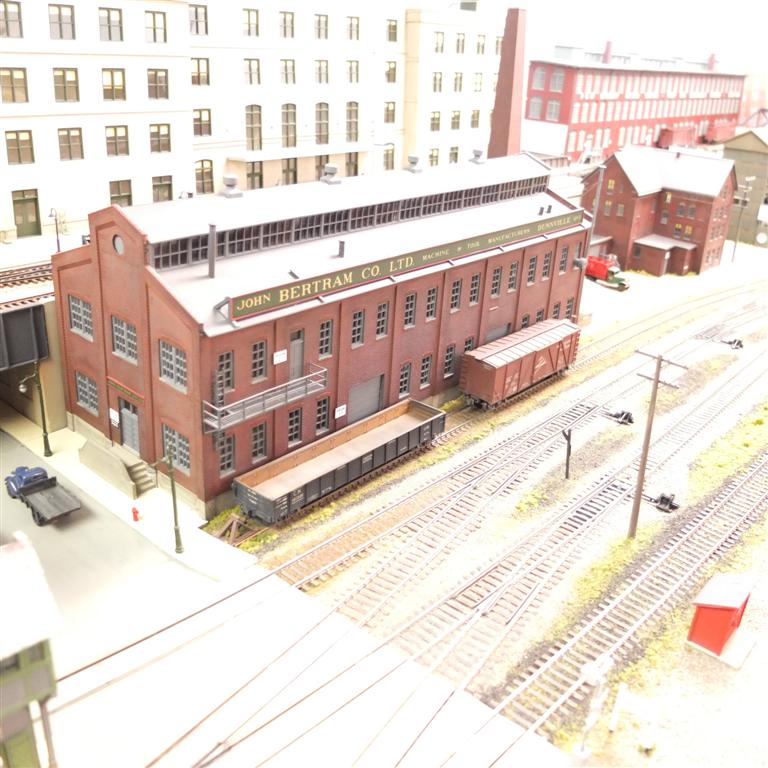 Re: Selling Pennsylvania by the pound... - Charlie B - 04-19-2009 Wayne, Thanks for starting this thread here. Maybe some others will post some photos too. Charlie Re: Selling Pennsylvania by the pound... - McGillicutty - 04-20-2009 Third picture down, that's a neat horse drawn wagon. Amish? Liberty street looks like a ghost town.... a very, very CLEAN ghost town! Nice touch on the scale house with the guy-wires for the chimney although a bit on the thick side... perhaps they are not guy-wires at all but steel rods. That big ol' chimney gives the impression that that is where everybody heads to get warm when it's howling cold outside. Re: Selling Pennsylvania by the pound... - doctorwayne - 04-20-2009 McGillicutty Wrote:Third picture down, that's a neat horse drawn wagon. Amish? That wagon is simply a delivery wagon, from Jordan Products. I haven't yet decided what's being delivered, so no lettering on the side. Liberty St. is pretty quiet, although it does dead-end at the tracks. Trucks and wagons from Creechan's and trucks from Bertram's Machine Works, across the street, make up the bulk of the traffic. Pedestrian traffic is limited to the office staff at both businesses, and the yard workers at Creechan's. (Bertram's production workers enter off Walnut St., one block south.)Here's a view showing the dead-end, sorta: And Bertram's, on the opposite side of Liberty St. - that's the Post Office side entrance, beyond the underpass: Here's an overview of Bertram's, showing the shop employees' entrance on Walnut St. (Photo courtesy of Secord Air Services): You're right about the steel rods on that chimney - those stovepipes made from sprue often need extra support. Wayne Re: Selling Pennsylvania by the pound... - MasonJar - 04-21-2009 Here's the Hamilton Model Works Coal Dealer. It's a pole-barn style shed common in Southern Ontario (Ian Wilson's books have a few shots of similar structures). The high doors face the tracks, with the low doors available for loading trucks or wagons. Andrew Re: Selling Pennsylvania by the pound... - doctorwayne - 04-21-2009 Nice work on that coal shed, Andrew. Wayne Re: Selling Pennsylvania by the pound... - MasonJar - 04-21-2009 Thanks Wayne for the kind words, and the link to HMW. Brian Martin from HMW is a great guy - I have several of his models, and he is always happy to answer my questions about the prototype... ![]() I made an N-scale version for a friend by reducing the plans on a photocopier and employing the same scribed wood/dowel approach from the HO kit. Since his layout needed something a little more worn down, I weathered it more heavily, and hacked away the bottoms of the doors. I also rusted the roof more severely, and even put a hole in it... The metal roofing is made by squashing foil between two pieces of SCSI computer ribbon cable. Somewhat oversized for N-scale, but looks ok to me... ![]() Andrew Re: Selling Pennsylvania by the pound... - doctorwayne - 04-21-2009 Nice job on that one, too, Andrew. Wayne Re: Selling Pennsylvania by the pound... - MasonJar - 04-21-2009 Thanks Wayne! ![]() Andrew Re: Selling Pennsylvania by the pound... - cn nutbar - 04-23-2009 Hello Everyone---despite it's location in the industrial part of Dunnville,Liberty Street is a favourite spot for local train-watchers.Where else can you find main-line freights,switching operations, and passenger consists on the elevated high-line all in the same area ![]()
