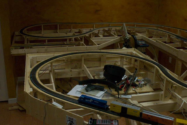 RobL's Layout - RobL - 12-18-2008 Hello all... Thanks to everyone over the past year on the "other" board who gave me ideas and inspiration on getting my layout going... those who may remember, my wife and I were putting an addition on our house and one of the "benefits" was a new train room... we had a smaller raised ranch style house with very little space to build a train, well suffice to say, I finally got the room (and it is still not enough, but I digress!). A little about me... I am 38 years old and live about 10 miles south of Buffalo, NY in the Village of Hamburg. I have been into model railroading since I was a kid... I built layouts growing up with my dad and have enjoyed the hobby in one way shape or form since. During the day I am a software engineer and at night enjoy playing roller and ice hockey while not working on my trains. (There is more than one way to let off steam in this world! ) ![]() About my layout... well right now it is a pine and plywood jungle with most of the track in place. The goal is to model autumn in New England... lots of color. I originally wanted a double track, however, space did not permit that without resorting to 18" radius curves which I was dead set against doing... and double track is not seen in much of New England anyways. The layout is a sort of dogbone shape... my main interest is to work on scenery, not operations so the train going in a "circle" is OK with me. Along the back wall there will be a spot for a "downtown" area with storefronts and some light industry. Along the left side I expect this town to continue converging into a more rural setting. My thought is that loop of track will be enclosed in a tunnel. On the right side, I have placed a couple of bridges and I am not sure what I am thinking as of yet for scenery. Finally, there is space in the back corner for staging / a small yard. The layout is controlled by a Digitrax Super Chief system and I am also playing with JMRI on an old laptop connected to the Loconet via a Locobuffer USB. Here are some pictures of the "first 30 days" of work on the layout: Re: RobL's Layout - RobL - 12-18-2008 Re: RobL's Layout - Green_Elite_Cab - 12-18-2008 Cool! I always liked New England, On conrail it tends to have more U-boats and other old GE locomotives like the C30-7s and its relatives, rather than all EMD GPs all the time as it is in New Jersey. Its no surprise you have what looks like a B23-7 on your layout! Re: RobL's Layout - Trucklover - 12-18-2008 Rob you have made some nice looking benchwork and it looks like you have a nice layout going so far ![]() ![]() I like the idea of having alot of scenery, even tho i am an industrial type guy, i think you have layed out the tracks very well and it will allow for some nice scenery!! ![]() ![]() Look forward to seeing some more pics of your progress :mrgreen: Re: RobL's Layout - RobL - 12-18-2008 GEC: Yep, thats a B23-7 in the pics... I know what you mean about the geeps... thats all we saw here in Buffalo too during the Conrail days... I also have a Green Mountain Railroad GP-40 that I will be running on the layout... I need to upgrade the decoder to get some sound in that one though! I chose to model a New England (specifically Vermont) style layout because I love the natural beauty of that area along with the fact that the small towns and villages don't look like they have left the late 1800's yet... something magical about modern meets old times... My wife and I have made numerous trips in the fall to New England and that love of the area determined my fate when thinking about a new model railroad. Last time we were up there we rode on the Green Mountain Railroad Foliage train... it was in I think 1940's coach cars pulled by an old RS-11... I think that have an old steam engine too but I believe they generally run the RS-11... anyways, the natural beauty winding through the rural areas is just stunning and I hope to capture some of that on my layout. Trucklover: Thanks for the comments on the benchwork... I had some old 2x4's laying around so I used them as the legs and the rest of the benchwork is 1x3's... I made sure it would support anything I put on it by putting through the ultimate torture test... I sat on it! ![]() Thanks for the comments! I have enjoyed looking at each of your progress and work and I hope I can provide the same enjoyment to the board as you guys do! --Rob. Re: RobL's Layout - Trucklover - 12-18-2008 RobL Wrote:Trucklover: Thanks for the comments on the benchwork... I had some old 2x4's laying around so I used them as the legs and the rest of the benchwork is 1x3's... I made sure it would support anything I put on it by putting through the ultimate torture test... I sat on it! Thats a very well built and sold workbench you have built, which is always a plus, unless you ever want to move it ![]() ![]() Empire Express, now that is a GREAT program, i got it a couple months ago and i designed my whole M&ET module trackplan in it. There isnt one thing i dont like about that program and the cost was just right for me too ![]() Re: RobL's Layout - RobL - 12-18-2008 I loved working with Empire Express... I really liked how you can set the minimum radius and the flex track adheres to that rule. I wanted nothing less than a 22" radius and it was nice knowing the software wouldn't let me violate that rule. I am thinking that is part of the reason my track work has worked out so well this time and that my trains aren't jumping off the track... in the past I would always try to rig together a layout with sectional track and of course nothing ever lines up perfectly and bam, trains jump the track! Overall I couldn't have been happier with Empire Express for the layout planning... the cost was more than fair and the time it saved me when building my benchwork and laying the track was worth every penny. One bit of advice I got from reading the forums was don't go into building without a plan, and while I think it is impossible to 
