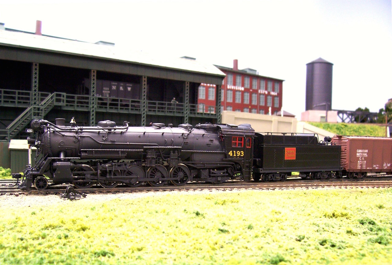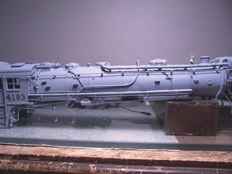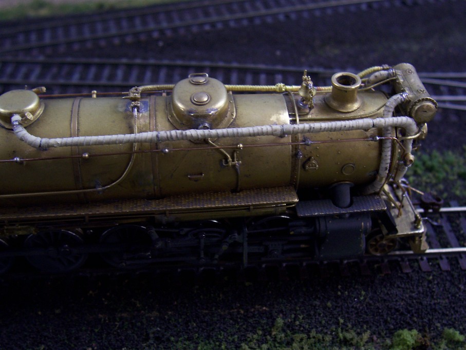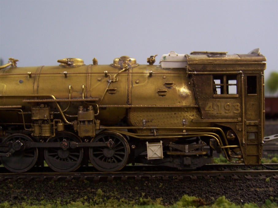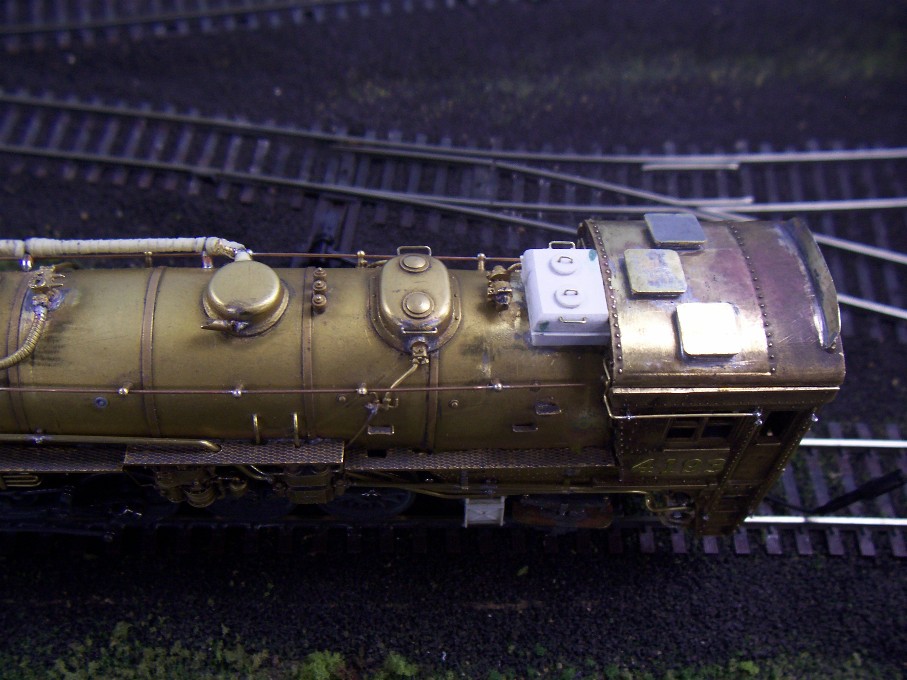 Building Beeg Boy...(with LOTS of pictures) - doctorwayne - 12-23-2008 …and Union Pacific fans shouldn’t get too excited, as that is neither a spelling error nor anything to do with that road’s largish articulated locos. Several years ago, my good friend cn nutbar was musing about the possibility of having me create a model of one of the CNR’s T-3-a locomotives. These were ten USRA Light 2-10-2s acquired, second-hand, from the Boston & Albany in 1928, not too long after that road had received their noteworthy A-1 Class 2-8-4s. He had an article in the CN Lines magazine of the CNR sig that gave a short history of the locos, along with some photos of the prototype and a pair of photos of a nicely-done model by John Williams, using an old Akane USRA 2-10-2 - not a model that you come across too often these days. I felt that if we could find a suitable loco to start with, it could be done. Bowser offered a 2-10-2, but the wheelbase was too far off, and the entire boiler was wrong. The only other 2-10-2s available were in brass, and not too plentiful even then. The topic of this loco would come up periodically, and I joked that if we ever did get started, as soon as we had acquired the loco, at least one manufacturer would immediately release a suitable 2-10-2, and at a reasonable price, too. This actually happened: Bachmann came out with a USRA Light 2-10-2 a year or so after the project got underway, followed by another, less suitable but useable, version from IHC. Anyway, I was in a hobby shop one day and they had (gasp!) a used Akane USRA Heavy 2-10-2. I had always felt that their version of the “Heavy” looked closer to what we wanted, so I called Mister Nutbar to apprise him of my discovery, and the loco was quickly purchased. While it was painted and lettered for a free-lance railroad, and had the incorrect “Long” tender (with a water scoop, no less!), it had also been remotored with a large Sagami can motor and ran very well. On its first test run on my layout, it made a trouble free loop almost around the room, but as it exited the lift-out bridge across the entrance to the layout and headed into the curve between the buildings of GERN Industries, the lead set of drivers derailed. However, loco and train continued on, unfazed by what appeared to be imminent disaster. At the first turnout, and without hesitation or faltering, the wheels re-railed themselves, and the loco and train carried on as if nothing had happened. “That’s some loco”, I commented, “It’s a real ‘Beeg Boy’ - nothing bothers it!”. From that point on, we referred to the loco as “Beeg Boy”. It took some time to acquire all of the parts necessary for the conversion work, but I finally got started on the project. Some things were pretty straightforward, while others, such as the ash chutes under the firebox, had me stumped for a while. The whole project, not too far advanced, ground to a halt for a year while I did a house renovation for someone, followed by almost another year that I just couldn’t get any enthusiasm for this job. I tinkered with it off and on, and finally the fire was re-kindled. From that point on, work went rather quickly, and the solutions to problems seemed to come easily. I kept making excuses to Mister Nutbar that the project was still stalled, though, as I was worried that I’d “run out of gas” before I got done. That, fortunately, didn’t happen, and today , when he arrives here to pick up two other locomotives that I’ve repainted for him, I hope that he’ll be pleasantly surprised when I also reveal the finished results of this long-delayed project. What follows is not a “how-to”, but rather a chronicle of the construction process. This is a scan of a page from the October 1983 issue of Mainline Modeler, showing one of the prototypes of the loco that we’re hoping to end-up with. The photo is from the Charles T. Felstead Collection. Here’s the loco as we found her, although the original tender is not shown. It’s in the paint stripper, while the tender shown is the Bachmann replacement that I’m going to modify for use with this loco. One of my first tasks was to cast a new boiler weight from lead, as the original was too small. With the large can motor, the loco was severely back-heavy. (Probably the reason why those lead drivers derailed.) After stripping the paint from the loco, I used a propane torch to remove the original cab and pilot from the loco. The original wheelset in the lead truck was replaced with a spoked set from PSC, then I used a cut-off disk in my Dremel to cut a slot in the boiler in preparation for the installation of the new cab. The new cab, an old Kemtron cast brass kit, was picked up in a box of train goodies bought by my wife at a garage sale for $5.00. (There was a lot of other neat stuff in that box, too -a real find!) I assembled it using the torch, then used the torch again to attach it firmly to the loco. Here’s the running gear as found. The trailing truck is missing part of the equaliser on this side, and the original pilot wheels are still in place. One of the distinctive details of this loco are the ash chutes under the firebox. I used square brass tubing, soldered to the loco’s frame, for the main chutes, then fabricated the doors from styrene and wire. Unfortunately, they are not as solid as they might have been had I used brass, but with 19 pieces per door, I felt that they were beyond my capabilities with a soldering iron. I did fabricate the missing part for the trailing truck and soldered it in place. I fabricated a new pilot deck, altered the frame, then modified a brass CNR-style pilot to accommodate a Kadee coupler. (Mister Nutbar had bought a number of these from a brass importer some years ago - this is the last one that we have.) Everything was soldered together using a 200 watt iron, then the coupler lift bar and stanchions, flag holders and a new air tank (built from lead-filled brass tu