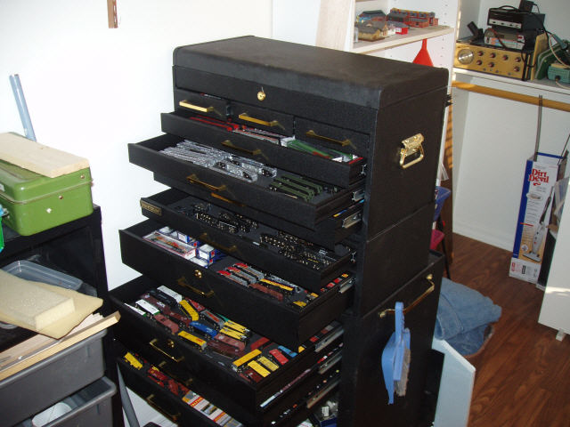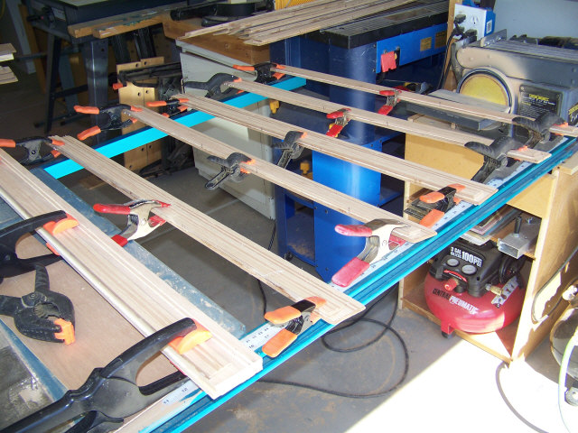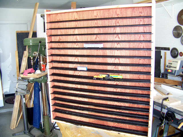 Re: EZ's 2013 duff challenge part 2 - ezdays - 03-18-2013 Yup, mucho fun. At least I knew where my meter was when I needed it.... Just one more shot. Let's face it, at this point there's nothing spectacular going on, but I do need to show that there is progress. This is the second glue-up of the shelves. There are 15 shelves total as well as the bottom rail. Each shelf has two rows at 34.25" giving me a total of just under 1100" to display my rolling stock. That works out to around 200 to 300 cars and engines. 1100 inches sounded line a lot until I just did the math. It may not be enough, but hey, there's always room on my layout I think... My next step it to either stain or paint these shelves. It depends on how well they take stain, but I'm concerned because of the raw ends on the oak plywood. I'll probably end up with a flat black on the shelves only. The rest of the cabinet will be stained oak. I'll have to try it first since I have one extra shelf that I can play around with. Re: EZ's 2013 duff challenge part 2 - ezdays - 03-23-2013 This is one small step for man.... well, just like the landing on the moon, it took a lot of work to get to that step. Here is all the parts for the box ready to assemble. I've painted the shelves flat black, since they didn't take the stain too well, and stained the insides of the sides and top pieces. Yeah, it still doesn't look like anything yet, but today, they get put together and it'll start looking like a display cabinet.... I hope... Re: EZ's 2013 duff challenge part 2 - ezdays - 03-23-2013 And then... One giant step for mankind. I've got the main box assembled. Frame is together, back and shelves are in place. I still have some trim pieces and the doors to put on, plus staining the outside, but now it's starting to look like a project. |