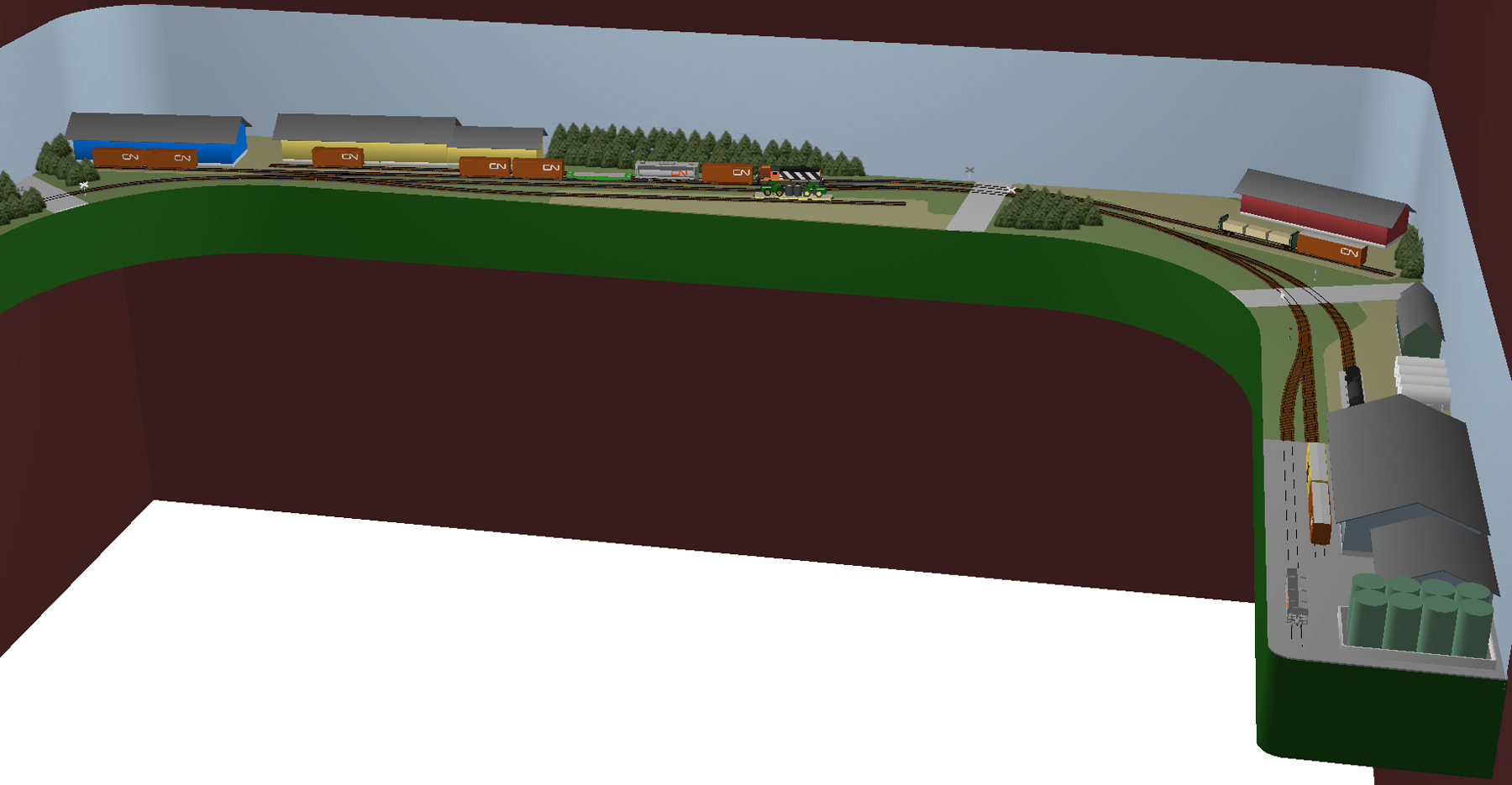 CN Kensington sub - take II - Canadian Atlantic Railway - 11-12-2016 This is my second take on the Kensington sub. The first was removed due to our house be put up for sale but due to some health issues that my wife is dealing with we took it off of the market until things settle down. So, take two will be 12' long by 8' long. Benchwork will be 16" wide so I can get all my benchwork from one sheet of plywood. Height will be around 52" high as I'm limited by the door of my electrical panel. On the right are two staging tracks. I'm not sure on what the dimensions will be yet. The era will be 1980 on Prince Edward Island and with CN being the Railway. The 40' boxcar was the dominant freight car so I am looking at potato loading, LCL with a team track for boxcars, flats and gondolas. Power will be a single MLW RSC-14. This class of diesel was a creation of CN's motive power department. A standard 1800hp BB trucked RS18 was retrucked with A1A six axle trucks with the centre axle being an idler for the lighter branchline trackage. ![]() Re: CN Kensington sub take II - dingbat - 11-12-2016 This is the 2nd draft of the plan. I think the 1st draft would have been too hard to switch the team track, so I flipped it. I also converted one of the potato warehouses to a ready mix company. I also added to 40' box cars to get a sense of scale. Re: CN Kensington sub take II - Canadian Atlantic Railway - 11-12-2016 I was just uploading the picture to post ![]() Re: CN Kensington sub - take II - dingbat - 11-12-2016 Here are a few 3D captures from the design done in 3rd PlanIt. Re: CN Kensington sub - take II - FCIN - 11-13-2016 This is great plan! Looking forward to seeing things as they progress. Very inspiring to say the least. Re: CN Kensington sub - take II - Canadian Atlantic Railway - 11-13-2016 Wow! That puts a whole new look on it Rob ![]() Re: CN Kensington sub - take II - Canadian Atlantic Railway - 11-13-2016 FCIN Wrote:This is great plan! Looking forward to seeing things as they progress. Very inspiring to say the least. Thanks Ed. My plan is to get the lumber this week and install the benchwork next weekend. Re: CN Kensington sub - take II - sailormatlac - 11-13-2016 Neat simple plan with lots of potential. BTW, wouldn't the TT looks better and more realistic if it was parallel to the mainline and thus longer? That's just a detail, but the scene would looks less contrived. I think when you'll put the track down, you'll be able to see what looking better. Looking forward! Matt Re: CN Kensington sub - take II - Canadian Atlantic Railway - 11-13-2016 I like your suggestion Matt. Rob, would it be possible to move the switch closer to the road to make the team track longer without making a mess of the geometry? Re: CN Kensington sub - take II - Canadian Atlantic Railway - 11-14-2016 The latest draft ![]() Re: CN Kensington sub - take II - dingbat - 11-15-2016 Hi All, We are slowing getting down to the final design. The latest changes include the addition of a fertilizer and chemical supply company (Brockville Chemical) which receives box cars and covered hoppers. Schurman Ready Mix was also removed from the plan, and replaced with a small Gulf Oil facility that receives tank cars. One of the potato warehouses was replaced with Schurman Building Supplies, which receives lumber in box cars and on bulk head flats. I mocked it all up in 3D, and took some captures. Take care, Rob. Re: CN Kensington sub - take II - dingbat - 11-15-2016 More captures: Re: CN Kensington sub - take II - dingbat - 11-15-2016 More captures: Re: CN Kensington sub - take II - Canadian Atlantic Railway - 11-15-2016 We have a winner ![]() Thank you for the work you have put into the design and the changes I requested Rob. Lumber was purchased and put in the garage. Looks like it will be Saturday before I will get a chance to start putting things together. Re: CN Kensington sub - take II - dingbat - 11-15-2016 Hey, You're welcome. Can't wait to see this one taking shape. Take care, Rob. |