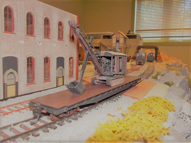 Re: Teejay : get off your duff challenge - teejay - 12-10-2016 The building is similar to one half of the Melbourne , Brunswick and Coburg Tram Shed , Australia , ........just the part that can look like a warehouse for my layout . T Re: Teejay : get off your duff challenge - teejay - 12-29-2016 The building is about done ( pics later ) and I'm moving on to the flat car with steam shovel load . How would the shovel be secured in real life ...guy wires , wheel chocks etc ? I can't seem to find anything in Google images . The flat car hasn't been glued together yet and details , grabs , brake wheel etc will be added . The steam shovel needs the various cables installed which will be a lot of fun for my old eyes . Re: Teejay : get off your duff challenge - doctorwayne - 12-29-2016 A new steam shovel might be shipped with the boom and shovel not attached, and perhaps with the stack not installed atop the boiler, although the photo below shows otherwise. The April, 2006 issue of RMC had a fairly lengthy article on Bucyrus-Erie, but most of the loads shown were of parts or partial assemblies of much larger shovels and cranes. Since the steam shovel appears to be weathered, I'd guess it to be travelling to a job site. Unless your overhead track clearances are very generous, the boom/shovel assembly should be lowered as much as is possible, with the control cab/track assembly moved closer to one end of the car to allow for this. Here's a photo of shovels in transit, but it's not close enough to show much detail and the site on which I found it had nothing else which showed anything better. I'd guess that there'd be at least a couple of chains or cables over the boom/bucket assembly, and perhaps some blocking fore and aft of the tracks...it's not likely that it would roll on its own, but careless switching might move it. The blocking would most likely be bolted to the car's deck or secured by extensions into the stake pockets. Wayne |