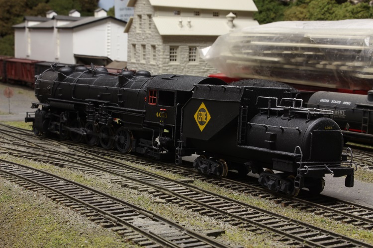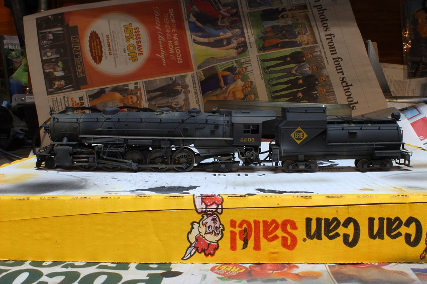 A brass Vandy tender that I painted for Toptrain last September. She is riding behind a Erie R-1.
