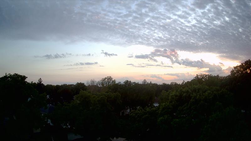 Partly cloudy and 66 at the moment with a predicted high in the mid 80s with continued partly cloudy skies.  Just had a small thunderstorm move through, leaving behind a quarter inch of rain.  Tomorrow and Monday could be nasty with highs in the 90s and high humidity.  May have to turn on the air conditioner.