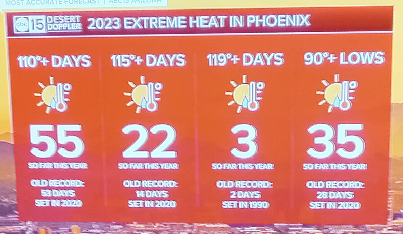 I can understand the need for that fire Charlie, went out to breakfast yesterday and it felt cool, only 80. Today, even cooler 74 is the low, may have to dig out my long-johns. Nope Just so you know what we've been going through this summer, he's a shot I took of the local weather report the other day: