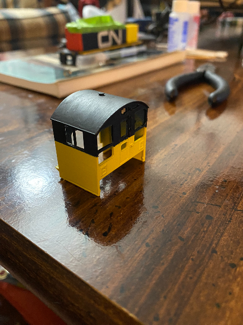 Below is the former conrail cab all painted and awaiting decals now. Also the former PRR cab all taped and waiting for paint.
