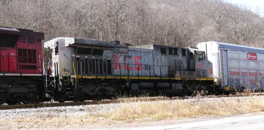 Trailing unit on CP236 south through my hometown---a very rare visitor---a grey ghost KCS de Mexico #4519