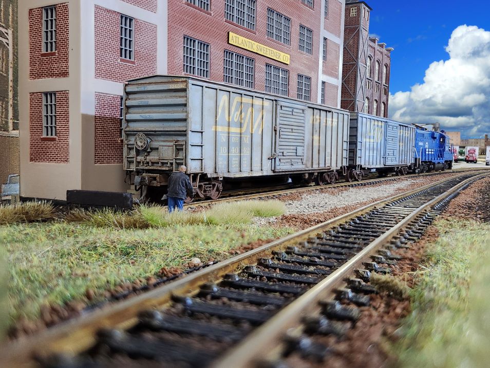 After the brakeman realigns the switch he makes his way up to the caboose.