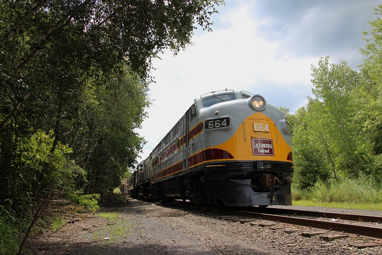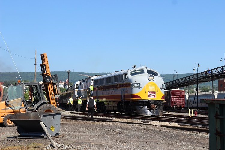 Here we are putting the train together.. The consists was supposed to be one of the DL's ex-D&H Rs-3's and Our F-3 on the point to Carbondale with only 2 or 3 cars, That all changed when the Rs-3's brake system was found to be incompatible with the f's. Also, the train was lengthened to a total of 7 cars. So DL 405 an Alco C-420 was swapped out in it's place.