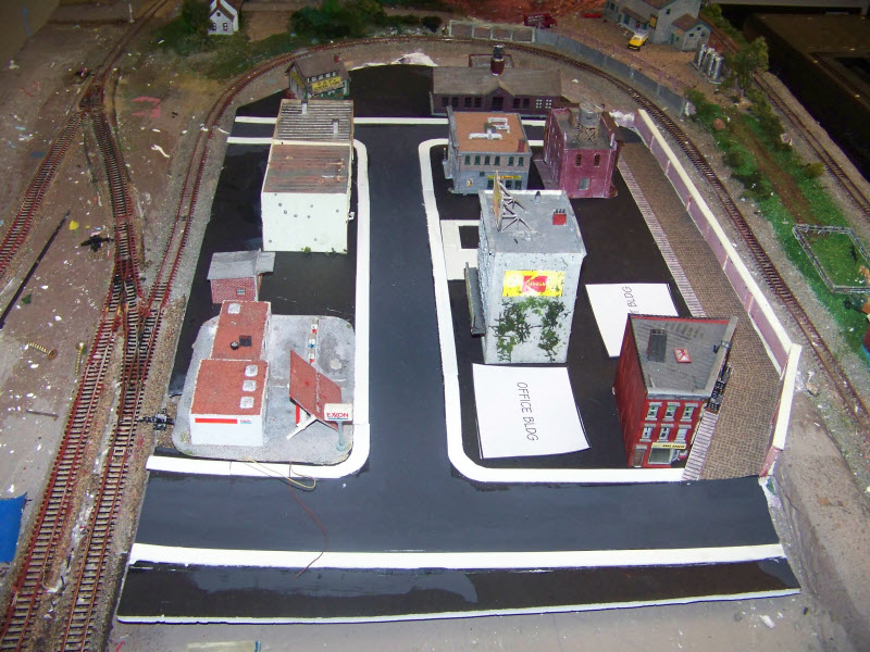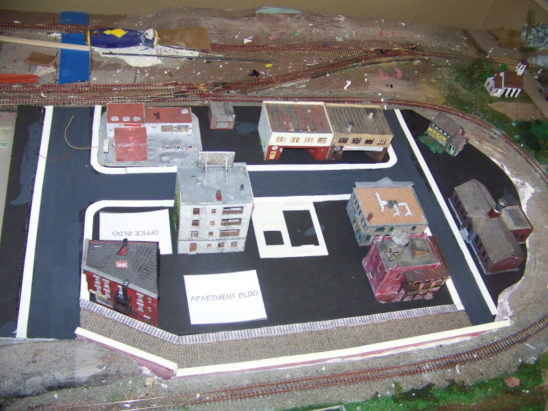 Just moving along slowly, but making some progress. I finally got the concrete guys to do the curbing as sidewalks, then the asphalt crew came and paved the streets. Meanwhile, got the masons back to lay cobblestones along Old Town St. One thing that I didn't count on though was that the glue they used to hold the sidewalks in place made the foam board warp. Concrete guys disclaimed responsibility, blaming the manufacturer of the foam board. I'm just hoping that when it gets glued in place that it goes back flat.