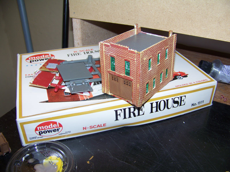 I've been working on the fire house kit, got a ways to go there yet but at least the walls are up and windows and doors are in place.