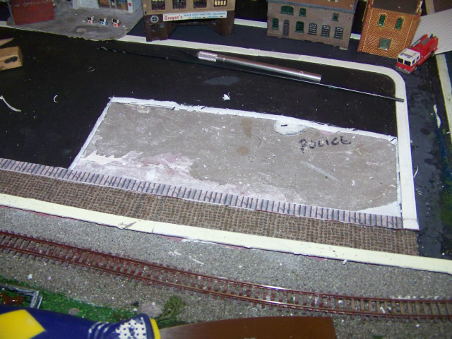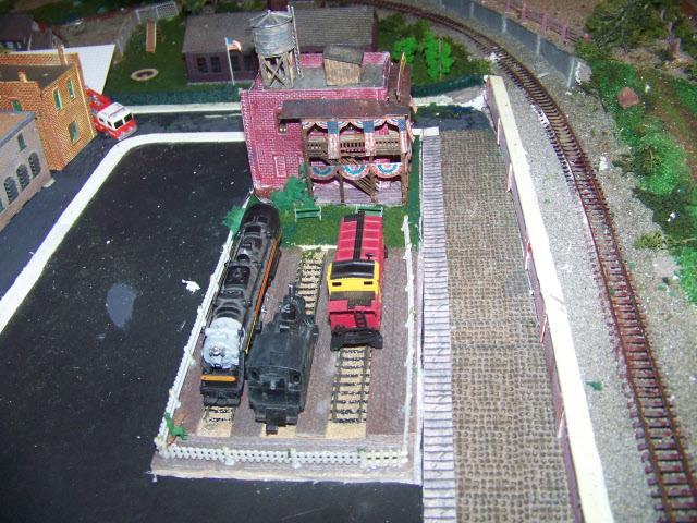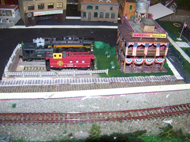 OK, some progress, and as usual, some photos with a few glaring errors or things that really need to be cleaned up. Probably the biggest error is where I thought I could get three sets of tracks in the space I allotted for the museum yard. Well, I was able to do that, just that when I put anything on those tracks, there was little room for visitors to walk around. Way too late to do much about that, but we'll see what happens later on.