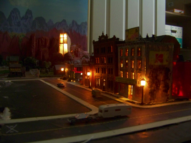 Still have some touch-up to do, got light leaking from underneath some of the buildings, (that's going to take a bit to fix that), need to add a few street signs and people, the light in the museum isn't working and need some paint touch-up as well. Don't know if I'll get all that done by tomorrow, but it is what it is today and probably tomorrow too....
