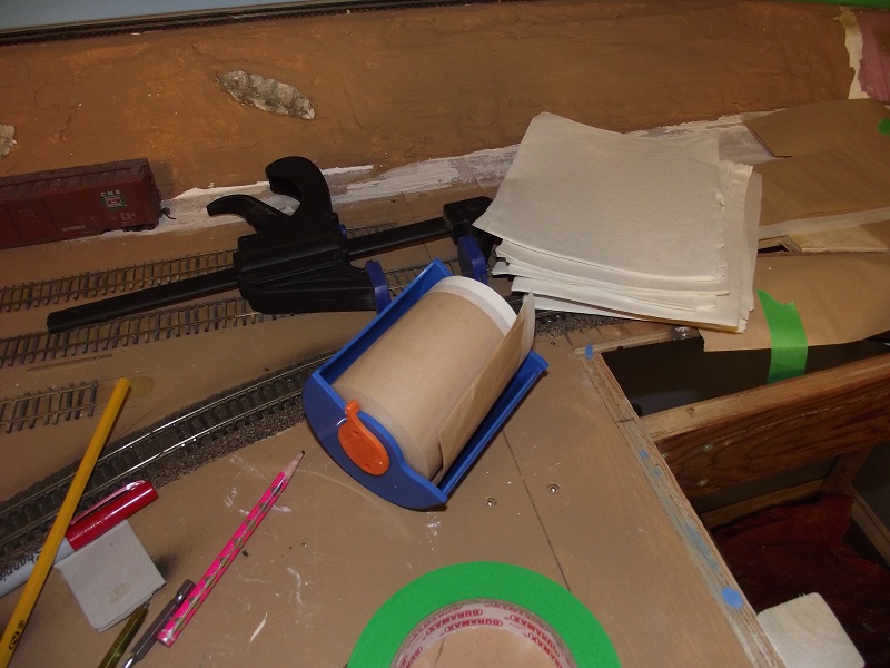 I found this in a local dollar store and thought it might be a good tip to pass along here. It's a roll of masking tape already mated with about a 6" wide roll or masking paper on it's own dispenser. It made the masking around the new scenery a snap.