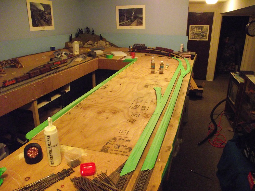 I cleaning off the area and taped off the track so I could paint the plywood before going any further.