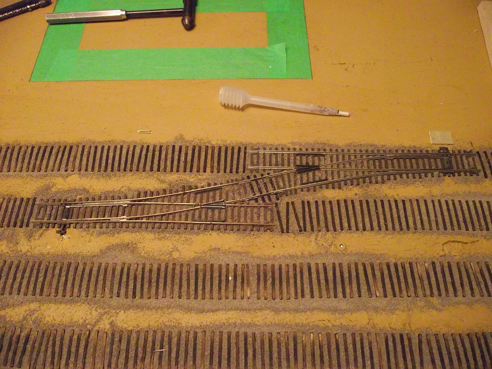 It needs a bit of cleanup but the turnouts all work the way they are supposed to and the ballast stayed where I wanted it. I do spray with the 'wet' water before but I used diluted Mod- Podge as my scenic cement.