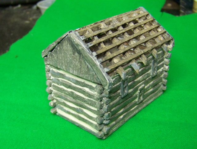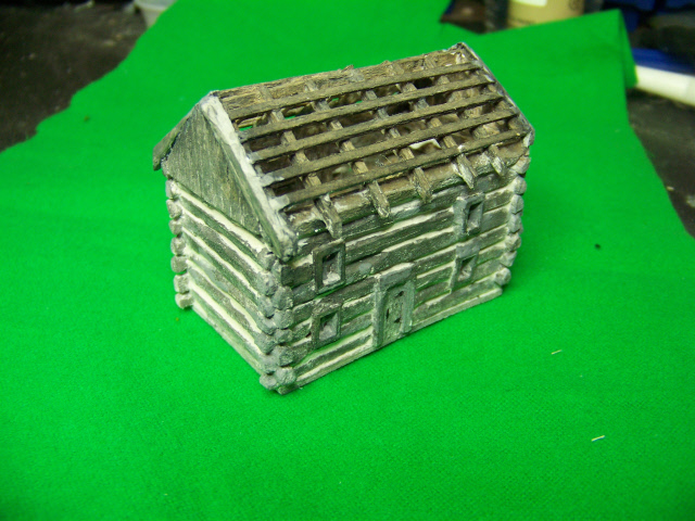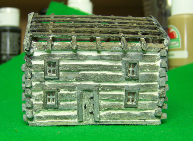 Thanks guys, I appreciate your comments. Been busy cleaning and touching up. Starting to look a bit neater now, got most of the stray chinking cleaned up. Scraping with an Xacto knife then washing it with a wet brush seemed to get it off and the syringe fills in a few gaps. This is where I am now, the photos pick out a few more spots that I missed cleaning off the chinking, and of course, I need a roof. I'll look into those shake roofs, I was hoping to just be able to print them, but that may not look authentic, we'll see. I'm OK with how the weathering turned out, looks a lot what I see on Barnwood Builders...
