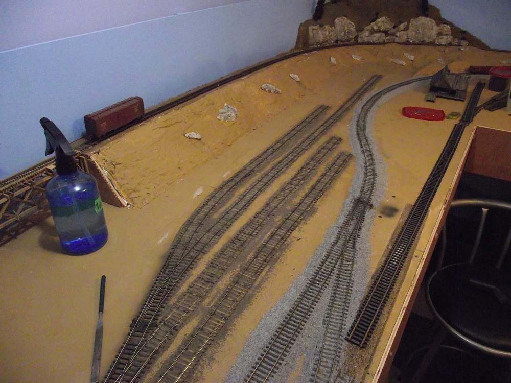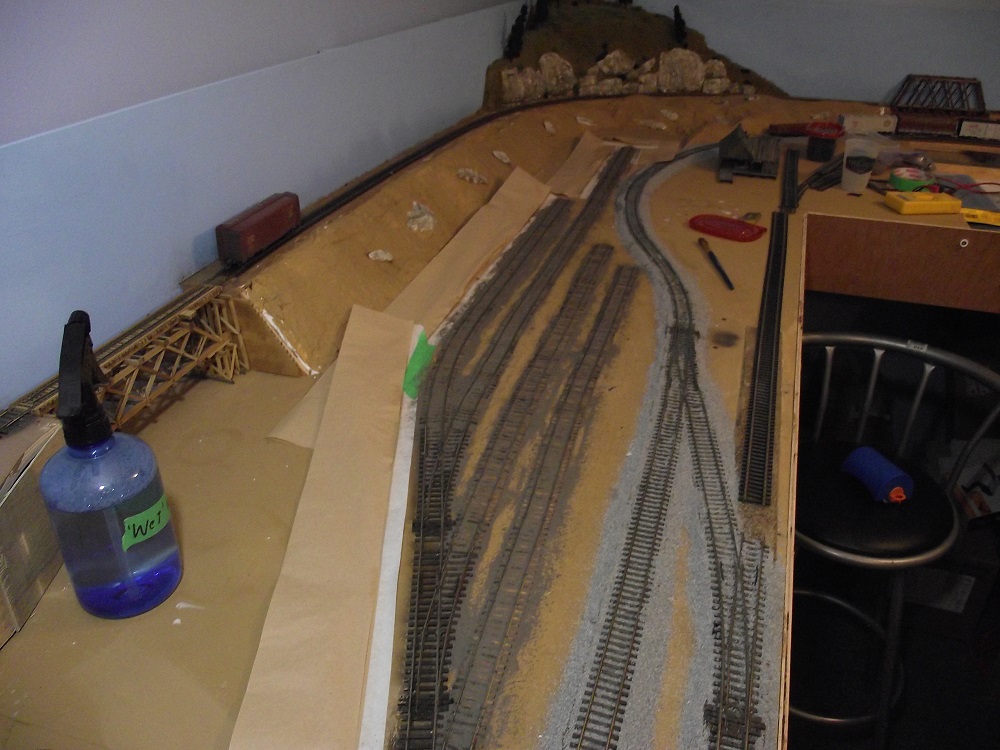 Speaking of ballasting, I ballasted most of the meadows yard this past week:
