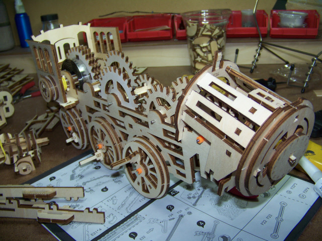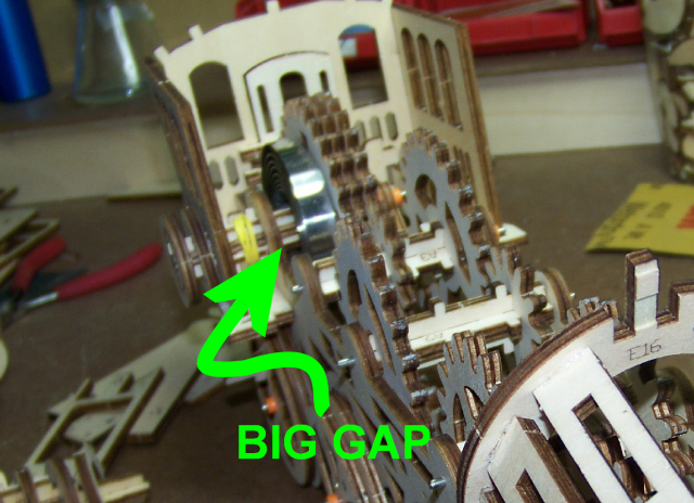 Step 39 1/2 says to disassemble the body and find out why the spring won't engage the main gear. I thought I missed a step way in the beginning because I had 4 J-2 parts that should have been used to lock the spring, but I didn't, they are there. There is two sets of J-2 but only one is used. They also have a J-3 gear that I cannot find where it belongs, so I'm assuming they are used in another assembly and just included to upset the builder.