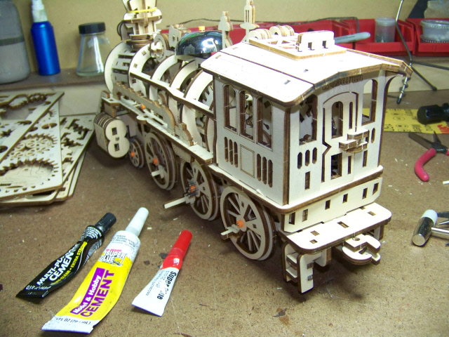 Uh, pay no attention to those tubes of glue in the photo, this unit does not require the use of glue (note the liberal use of rubber bands which will be removed soon)...
