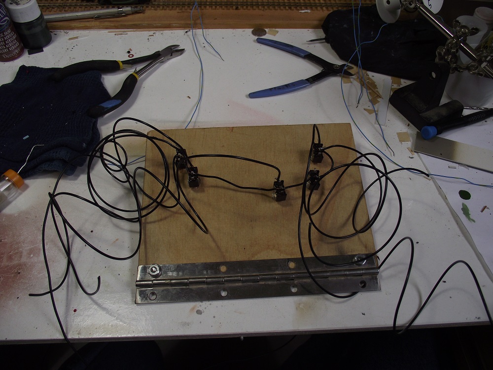 On the other hand, I had to re-wire the small control panel that I had made for the DC branch line. I had originally used single-strand telephone wire to wire the panel and the return terminal block. This time I used some 22 gauge multistrand that's a bit more flexible.