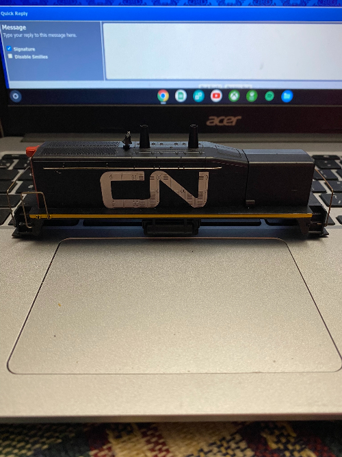 Below is going to be a project for over this winter. Yes I might be hung out to dry with the CN fans here but it was the only one the local hobby shop had. I know the C&I didn't have a calf units on their roster but it's going to be a what if they did. So it will be stripped of it's paint and then will be painted in the classic black over yellow. It will be an unpowered unit for right now. All the workings are there to hook it up for it to be powered but right now with having an older power pack it does get difficult to run more than two-three engines at a time.