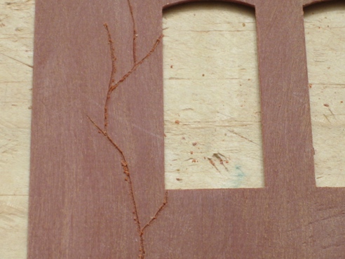 To add some character to the rather blank walls I scribed in some cracks with a dental tool. The next steep will be to install them on the foundation, add the brick columns, and window details.