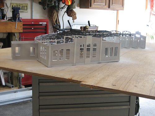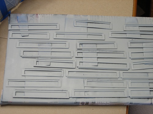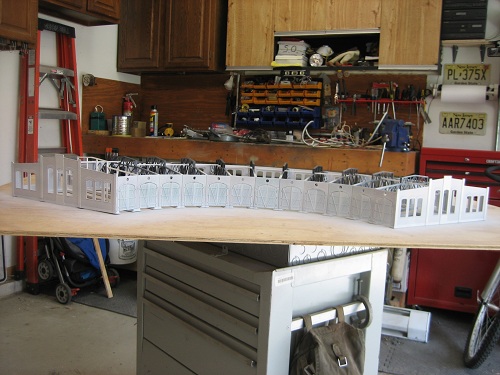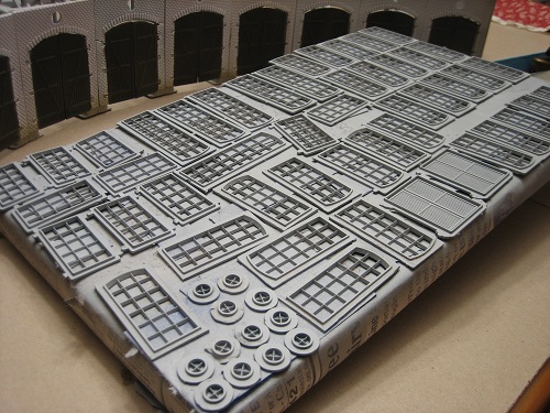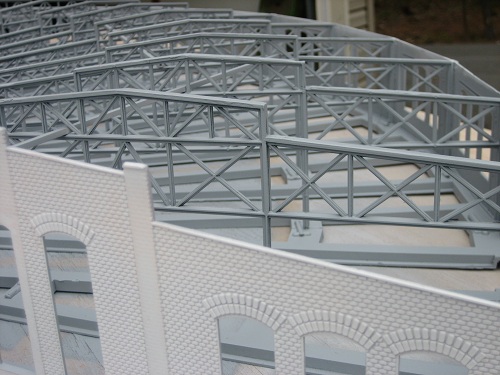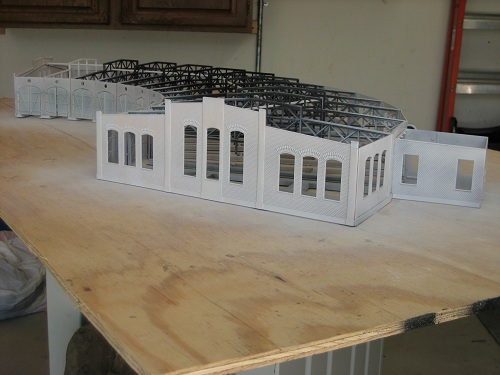 6 of the stalls are from used kits that were already assembled so I'm removing them from the roof sections as I move along.     The roof sections from these kits are badly damaged, they will all be replaced with card stock. If you need some Heljan roof sections just let me know, I have some left overs from the new kits that I'm not using.