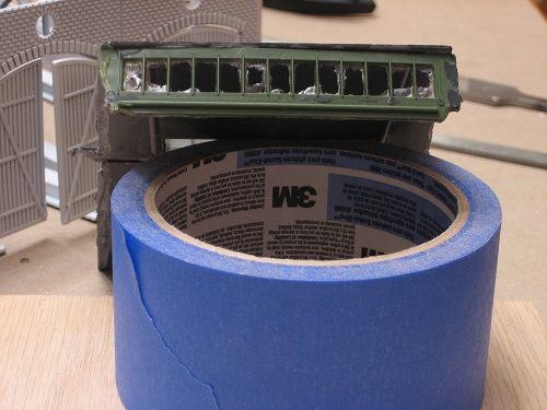 Finally, remove the tape as soon as the newly applied paint is dry to the touch, peeling the tape back over itself at as sharp an angle as possible. This decreases the stress on both the newly applied paint and on the previously applied coats. You should be able to use regular masking tape without fear of lifting the paint - I find that the green and blue varieties do not stick well, especially when used over irregular surfaces and particularly when the paint being used is solvent-based, such as Floquil or Scalecoat.