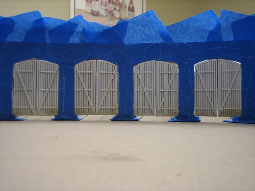 At this time steamtrains, my plan is to spray the doors and let them dry. Mask off the doors and concrete and spray the brick.I just want to give ample time in between coats to insure that I don't pull off the previous layer of paint Eek .