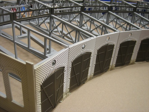 I broke out the airbrush and painted the concrete portions of the roundhouse.