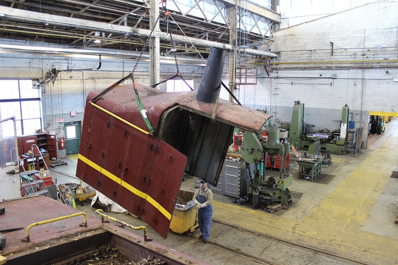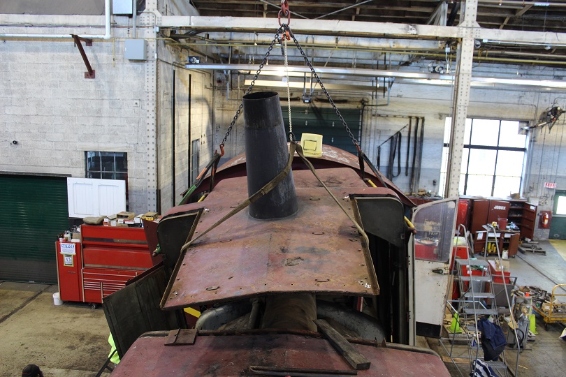 Boston and Main 4-6-2 # 3713 Called the constitution, will be returning to passenger service in the next 5 to 7 years, hopefully . At this point all the appliances are being inspected and sent out for rebuilds. The PRR boxcar containing these parts has been moved inside the restoration shop so this can take place.