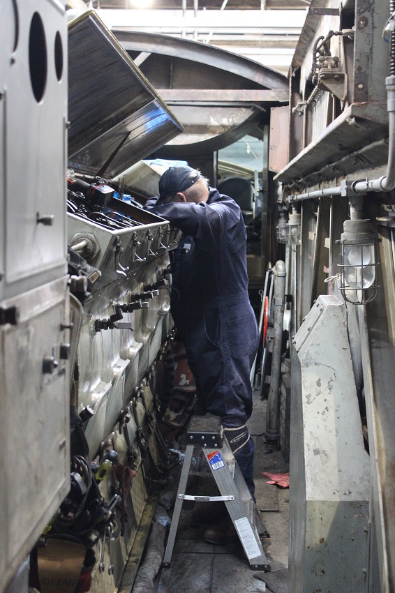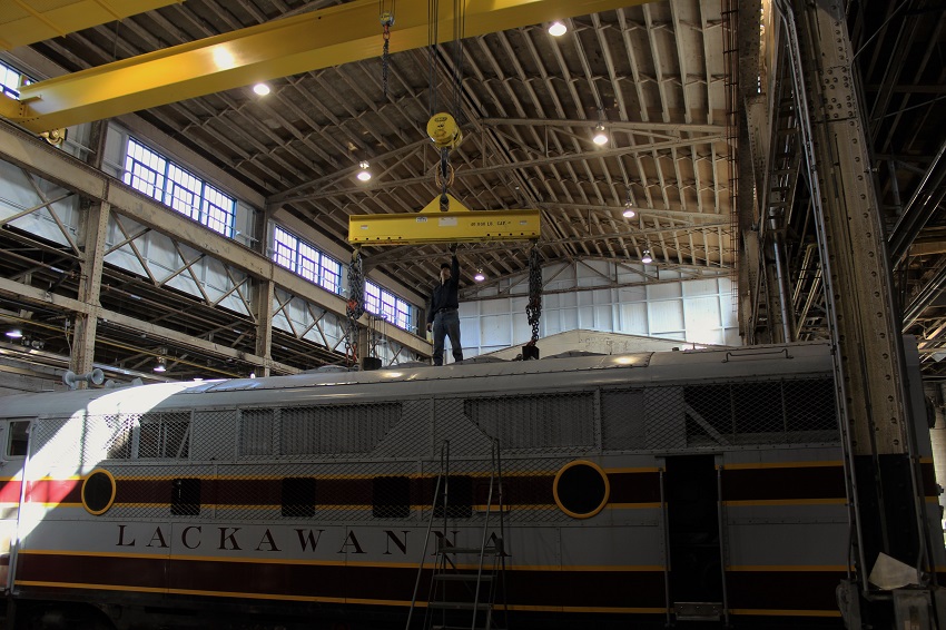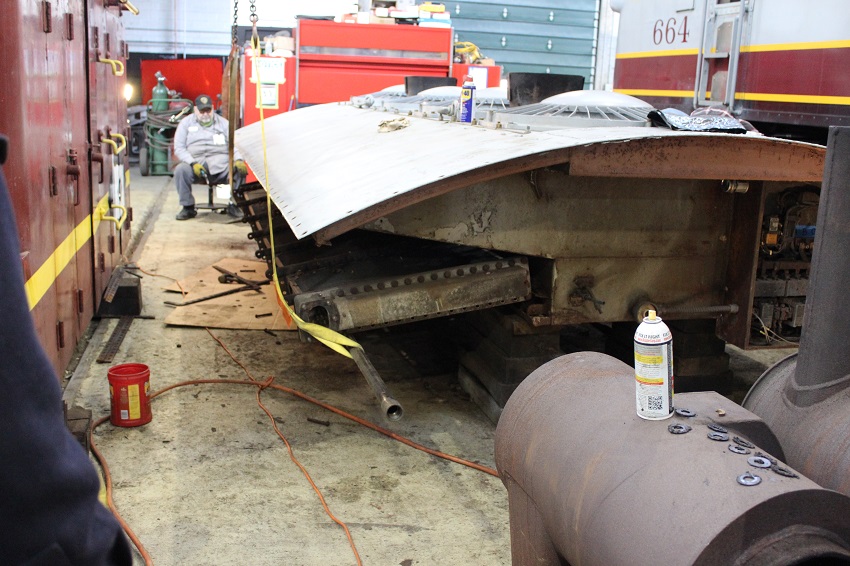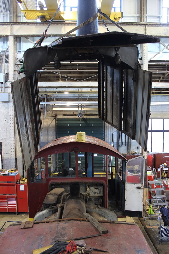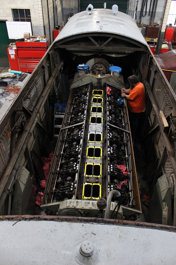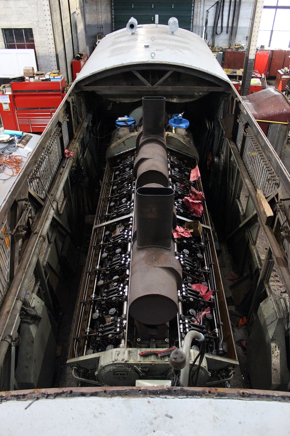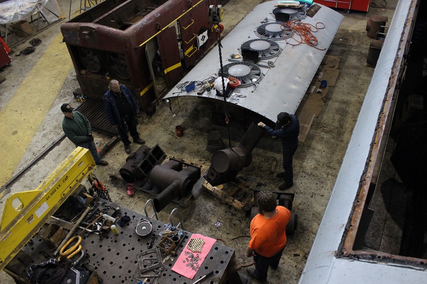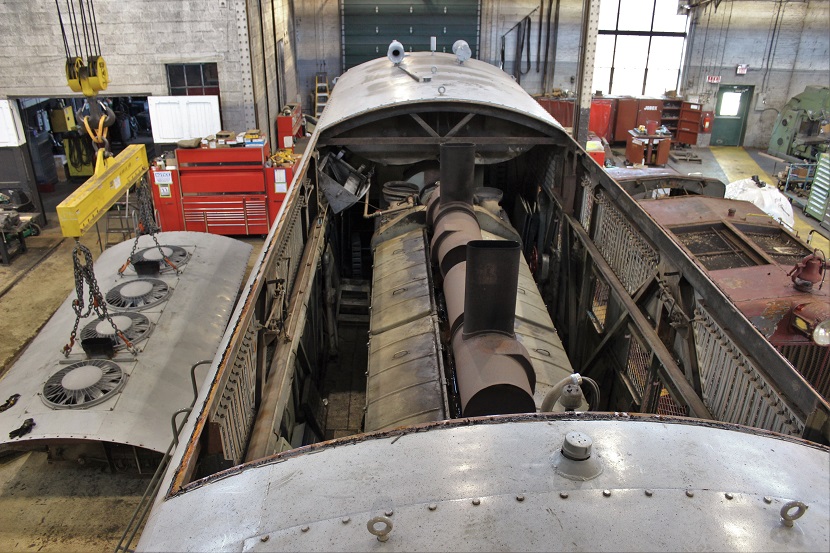 Today we removed the Fan/Radiator hatch off the roof of 664. There are some water leaks to repair, and the top deck needs to come off one side of the 567 prime mover to repair a leaky oil gasket.