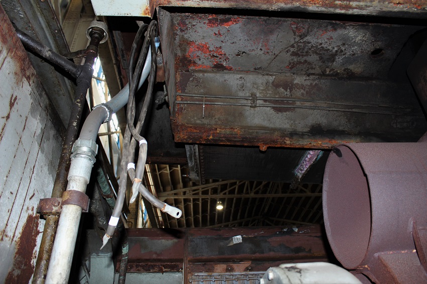 The hatch will be placed on some wood blocking on the floor next to 664 for repairs. Those are the radiators under the roof section. The box in the back houses the controls for the fans. The front section holds the intakes where the air filters go, They then direct air into the blowers underneath them.