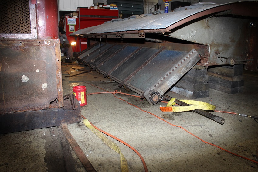 We are moving right along,,, But now it looks like we are going to have to remove the top deck on both sides of our prime mover. five of the six radiator sections have been taken out and sent out to be rebuilt, # six , the one at the far end of the pictures from last week, is giving us some trouble.