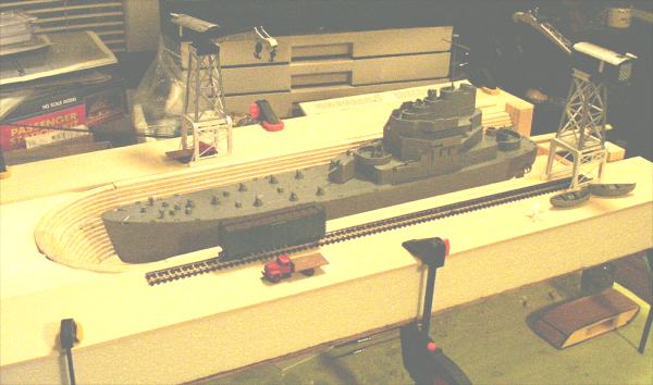 this pic shows the basic drydock, with the ship it was designed for. The styrene sheet "concrete" hadn't been attached yet when this was taken.