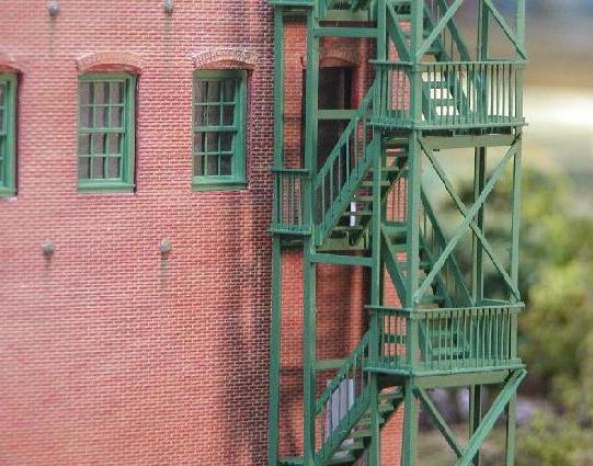 This particular shade of orange brick was quite common in my hometown of Hamilton, Ontario, although many structures appeared much darker on account of airborne pollutants. If you use the spackle method of applying mortar, you can pre-tint it with acrylic paints, or simply add a wash of the same after the "mortar" is in place.