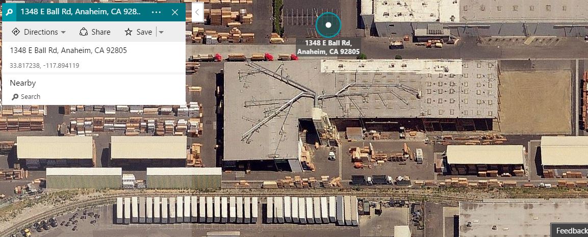 1. Reel Lumber Services - Which is a fantastic site to model, very unique and has buildings along the track each side of the street running on E Santa Ana Street. Notice that all the buildings in the pic below are all Reel Lumber. Honestly one of the very coolest industries I have seen and was definitely rail served at some point.