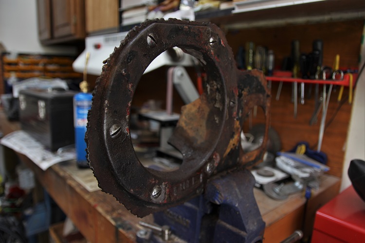 The screws holding it on have been in place probably from when it was first build by EMD. I could not get them to budge. I first tried to soak them in a tub of penetrating oil over night , that did nothing. Out came the torch, but I just could not get it hot enough to brake them free. So I ground the screw head flat and drilled them out on my drill press.