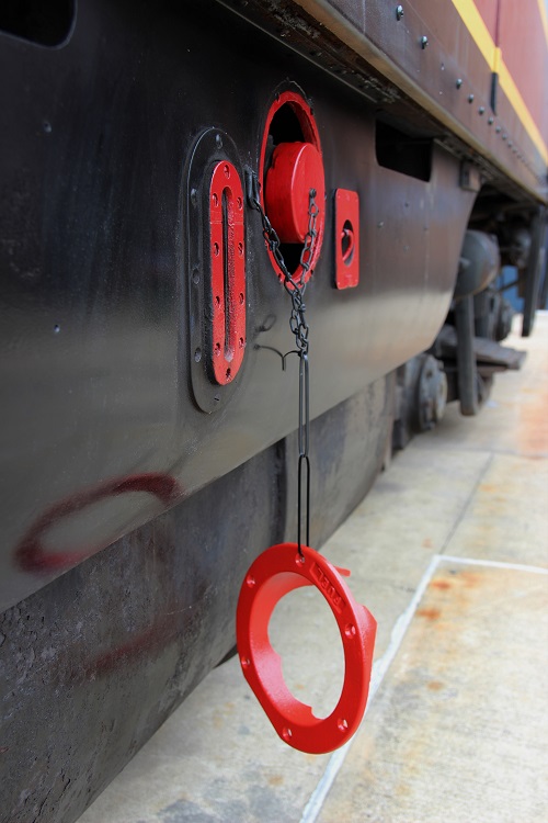 The trim is held in place by a ring with threaded holes in it. The screws pass through the skirting and into the ring to form a sandwich. I will drill and tap a new set of holes in this once I have the correct screws. When I go back up to Steamtown next week all the salvaged parts will go into a sand blast booth and parts washer before getting painted. I was also able to save the emergency fuel stop trim as a bonus.