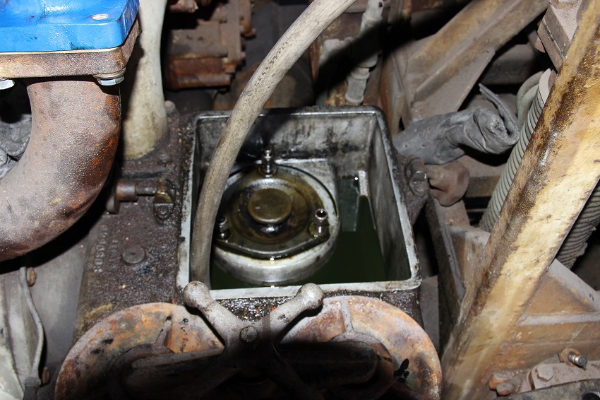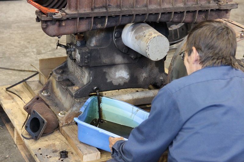 We had a very productive session last weekend with the "B". Once we removed as much of the 40 or so year old oil as was humanly possible, we started pumping in some new stuff,,200 gallons worth of zinc fee, 40 weight.