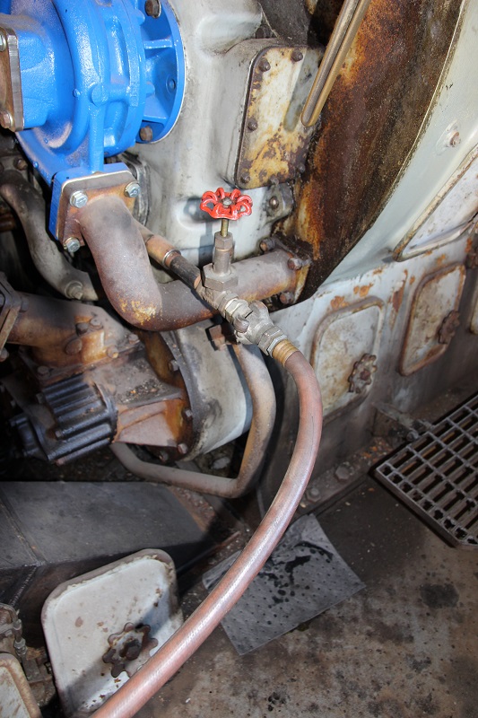 We kept a close look out for any leaks as this was the first time in about 40 years that any oil has moved through this 567B block. The next two barrels were pumped into the pre-lube fitting located on the opposite side of the block. This allowed the oil to flow from the top deck of the block through all the cylinders , down past all the crank shaft bearings and into the crank case. Once again looking for leaks, The nice thing was that none were found.