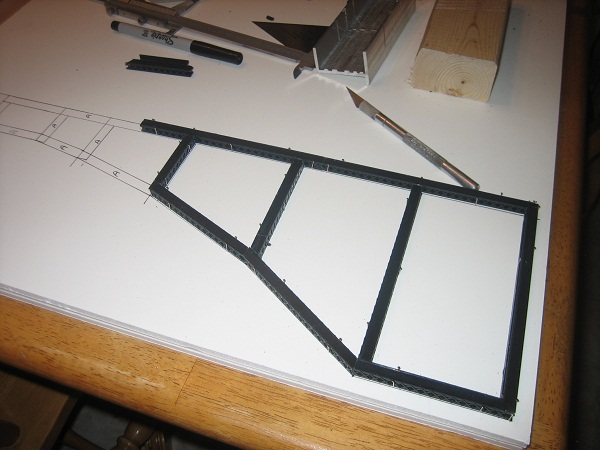 Now I felt that I should get going on the bridge it's self.I started by drawing the towers out in full size on some foam board. Really paying attention to keeping all the joints at right angles. I checked and checked again to make sure I was happy with it before I started building anything. The foam board will act as a template, so it has to be correct.