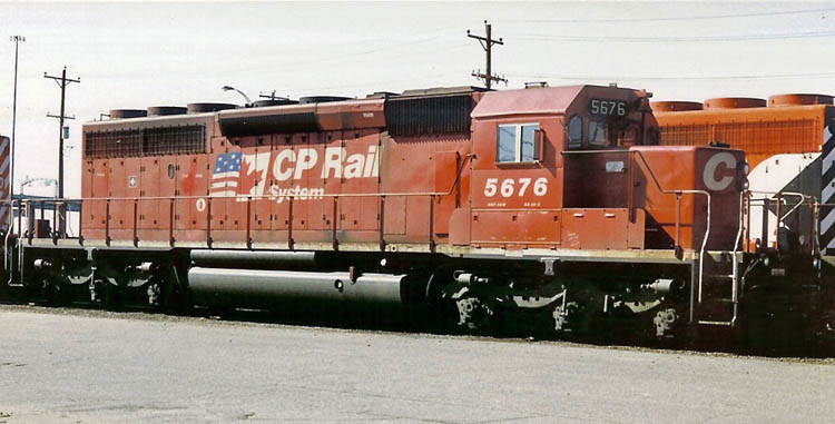 It's been over 24 hours and none of the steam guys have posted, so going off of Charlie's CP photo here's CP 5676, a SD40-2. Phila PA , April 1997
