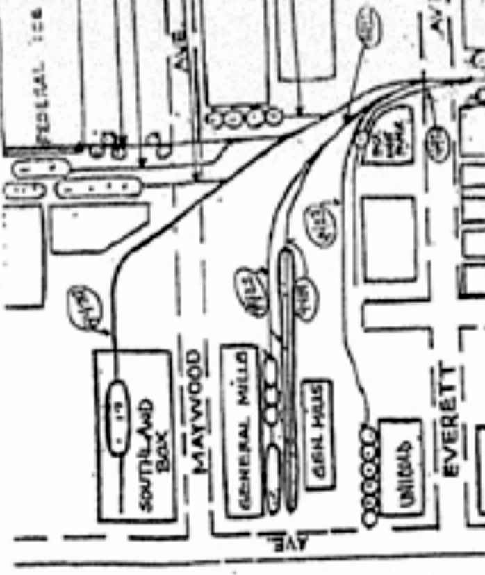 Here's an aerial & track charts of the "Horn Lead" where General Mills is located. The address is 4309 Fruitland Ave 90058 (Vernon CA) if you want to look it up (Acme, Bing, Google, etc.)