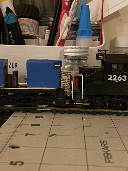 After looking at the height of this, I'm thinking I need to cut some more off of it to make it the correct height. If I'm not mistake the slug was even with the nose of any of the GP40's, SD38's, etc etc and this is just a little bit higher than the nose of my GP40. Am I wrong or am I right?