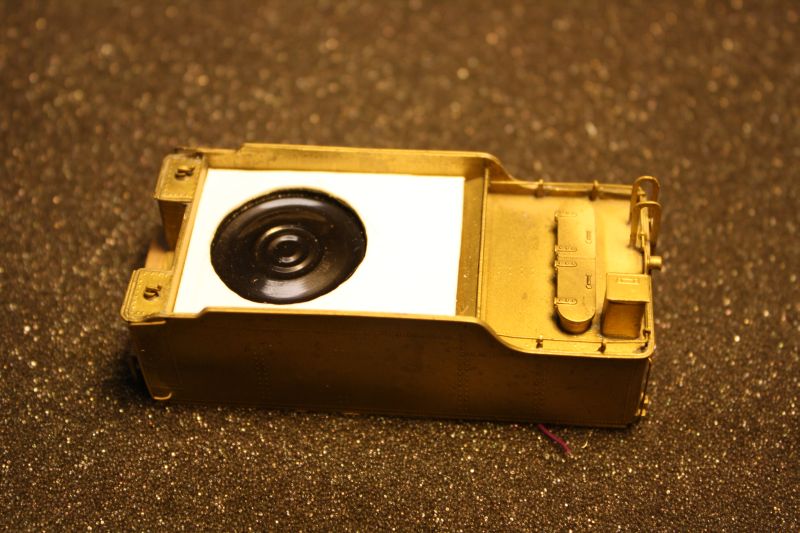 When I set up the tender on my 2-8-0 and 4-6-2 for sound I drilled some holes in the tender floors where the speaker was going to be mounted. The bottom shot of the 4-6-2 tender below shows what I did.