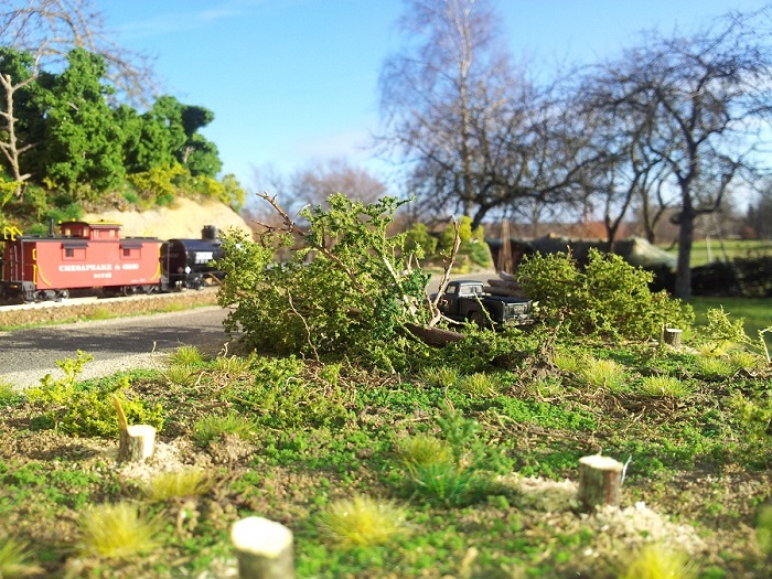 I know, this technique is not best way to apply trees on a complete West Virginian layout, but for special scenes it will be great! This tree will be applied to the new sawmill scene.